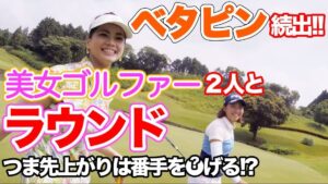 スーパーショット ベタピン続出!!美女ゴルファー二人とラウンドなう。 つま先上がりは番手を上げる?下げる?